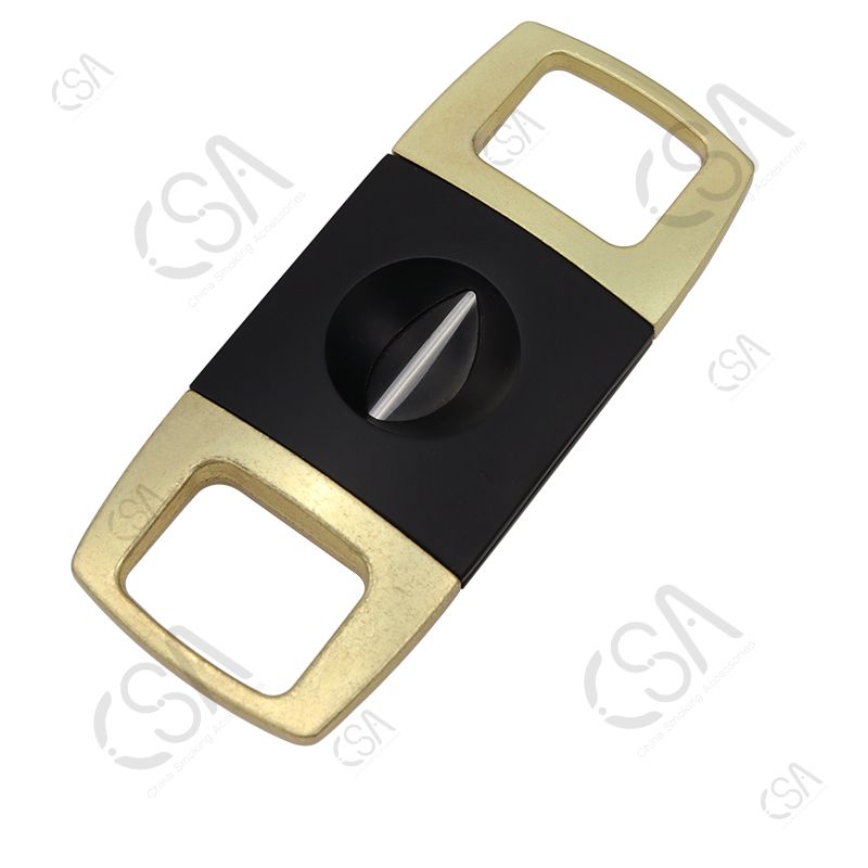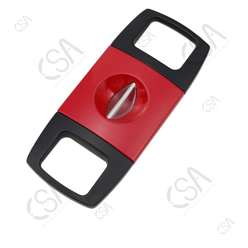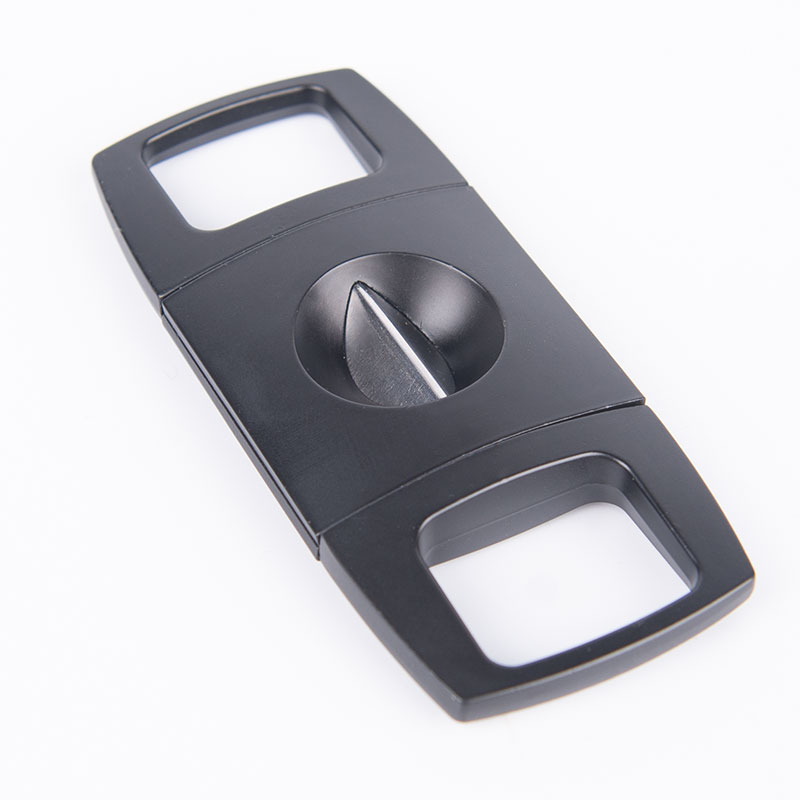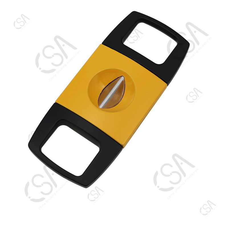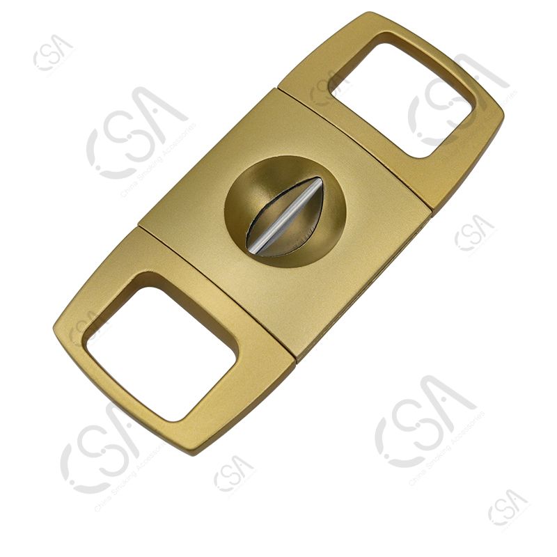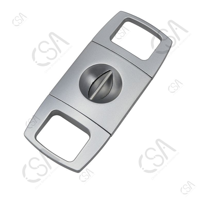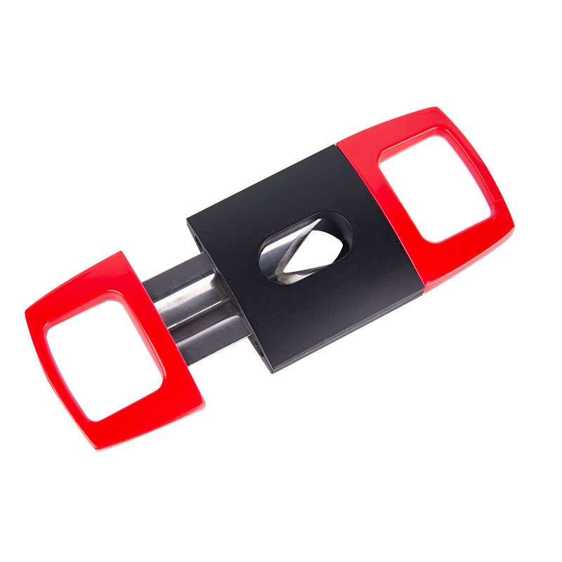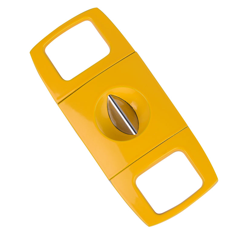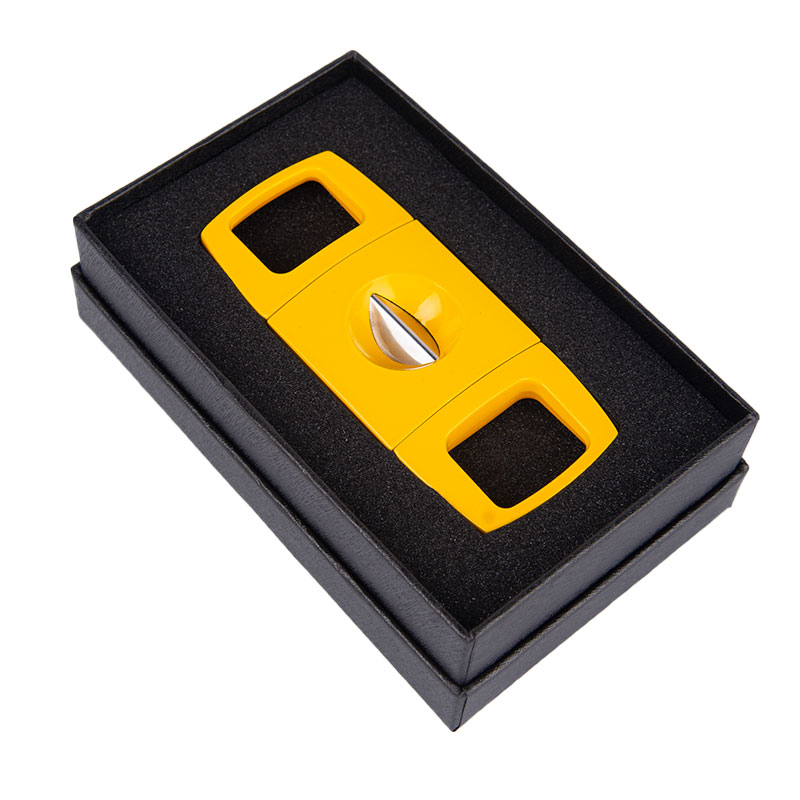 The V Cutter features a modern, elegant design and is Lightweight, Extremely Portable, and very Well Balanced, making it easy to use. It has a sharp V-shaped blade for a pretty cut. The blade is made of stainless steel, type 420J2, and the body is Zinc with a paint spray finish. The V cutter has three basic styles and can be customized according to your requirements.
